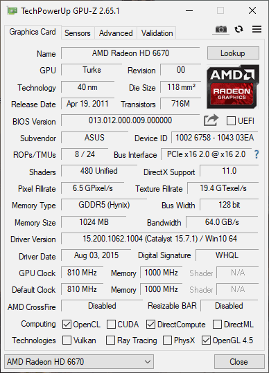Asus EAH6670/DIS/1GD5 GPUZ