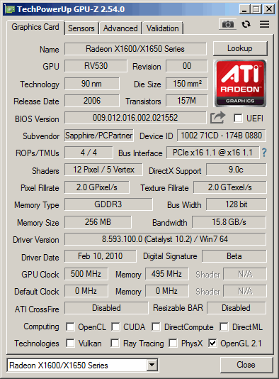 Sapphire X1650 DDR2 AGP